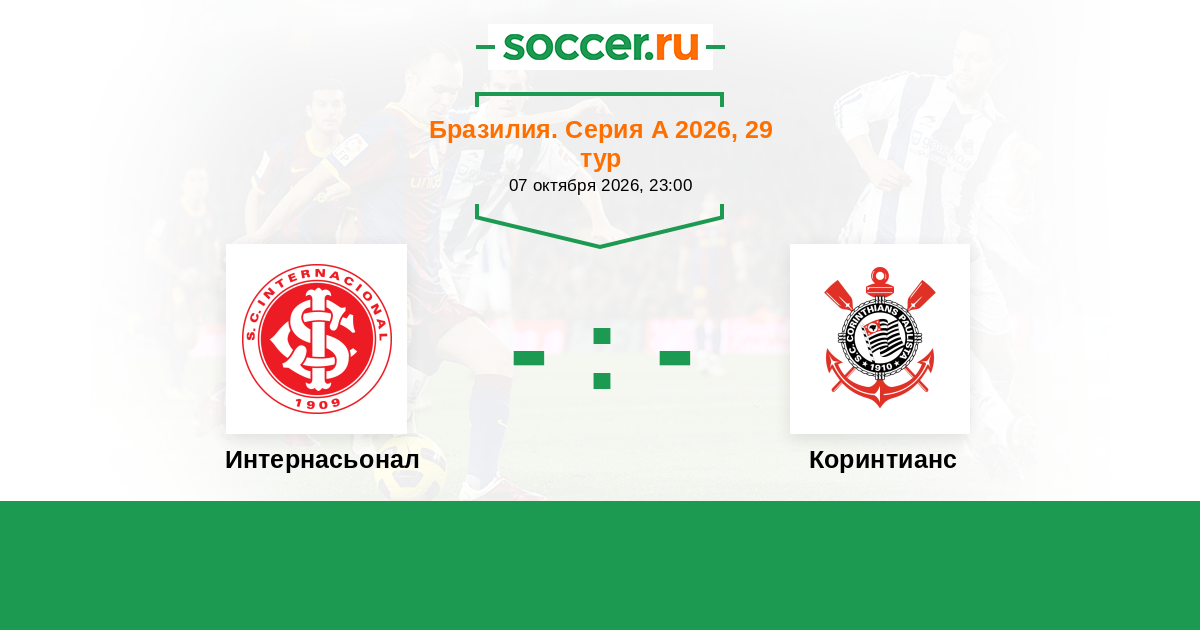 Бразилия. Серия А 23.09.2018 Коринтианс Логотип футбольный клуб Коринтианс (Сан-Паулу) 1:1 Логотип футбольный клуб Интернасьонал (Порту-Алегри) Интернасьонал