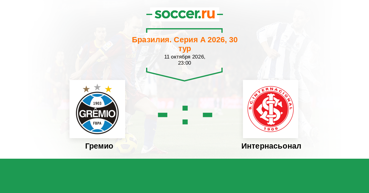 Бразилия. Серия А 12.05.2018 Гремио Логотип футбольный клуб Гремио (Порту-Алегри) 0:0 Логотип футбольный клуб Интернасьонал (Порту-Алегри) Интернасьонал