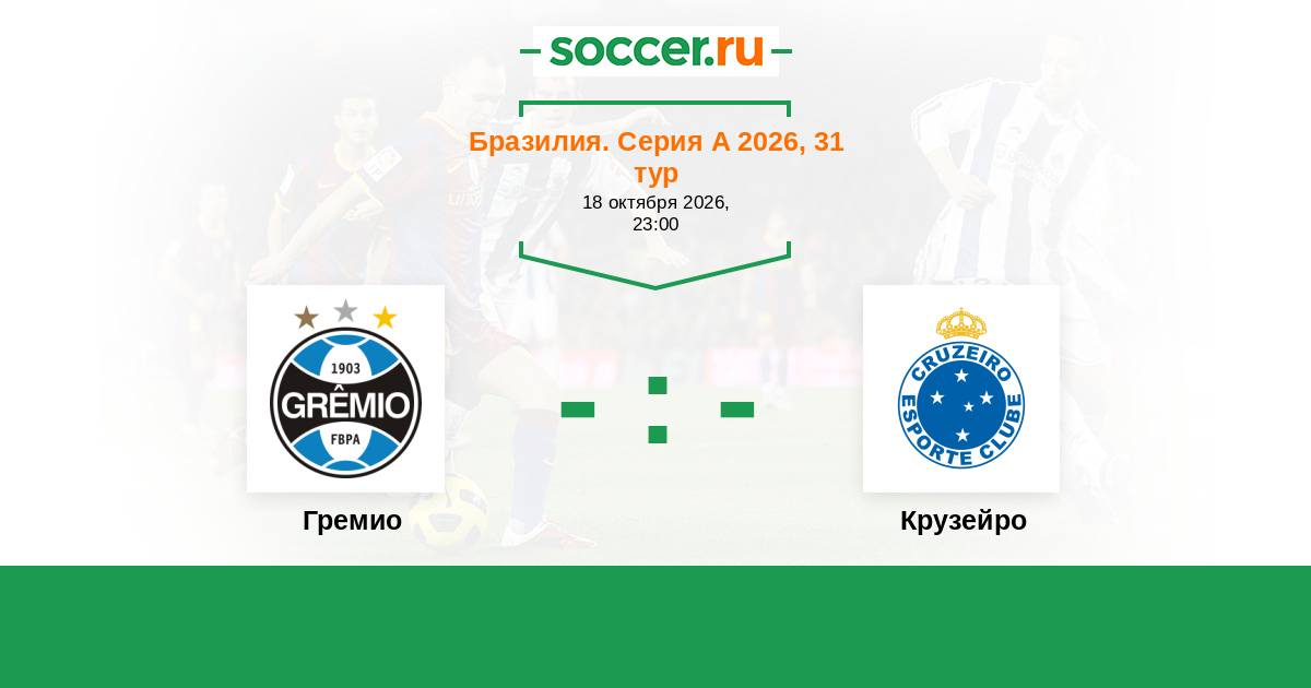 Бразилия. Серия А 12.10.2017 Гремио Логотип футбольный клуб Гремио (Порту-Алегри) 0:1 Логотип футбольный клуб Крузейро (Белу-Оризонти) Крузейро