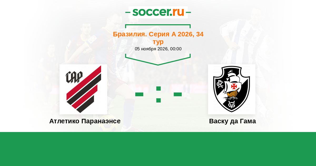 Бразилия. Серия А 15.11.2018 Васку да Гама Логотип футбольный клуб Васку да Гама (Рио-де-Жанейро) 1:1 Логотип футбольный клуб Атлетико Паранаэнсе (Куритиба) Атлетико Паранаэнсе