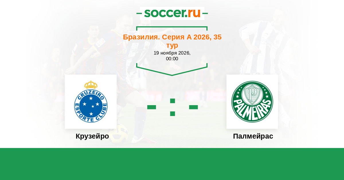 Бразилия. Серия А 27.10.2025 Палмейрас Логотип футбольный клуб Палмейрас (Сан-Паулу) 0:0 Логотип футбольный клуб Крузейро (Белу-Оризонти) Крузейро