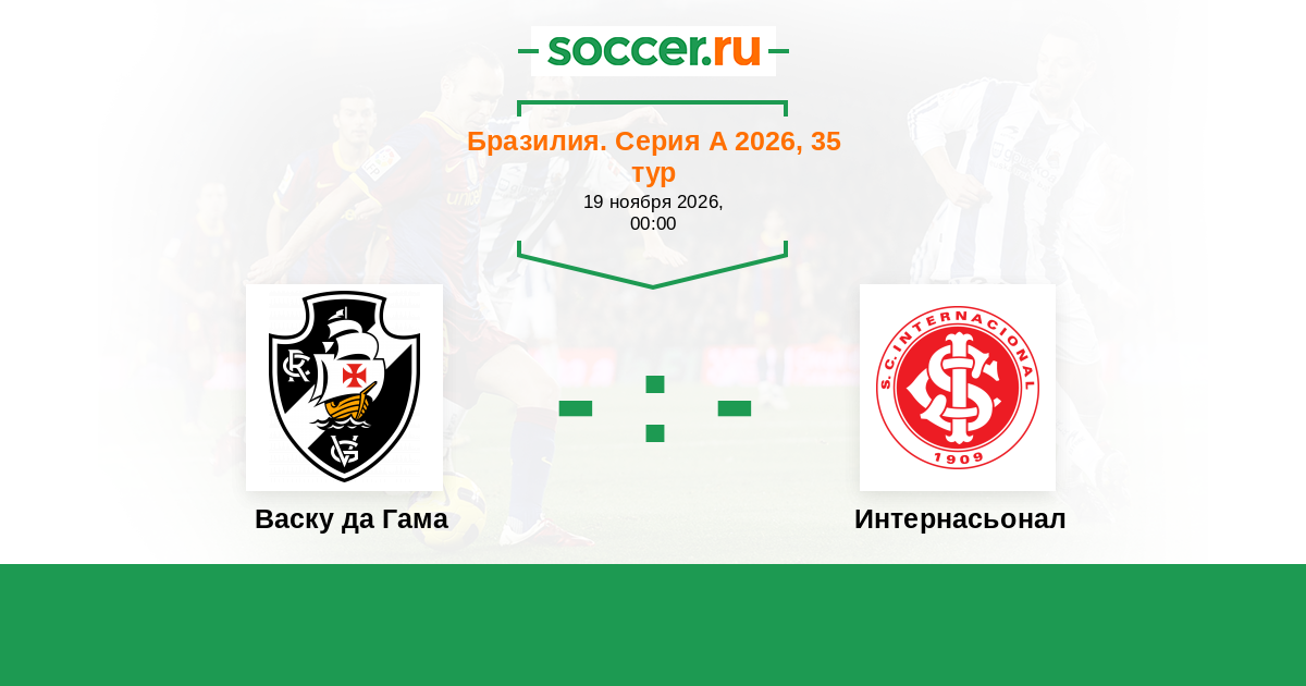 Бразилия. Серия А 27.10.2018 Васку да Гама Логотип футбольный клуб Васку да Гама (Рио-де-Жанейро) 1:1 Логотип футбольный клуб Интернасьонал (Порту-Алегри) Интернасьонал