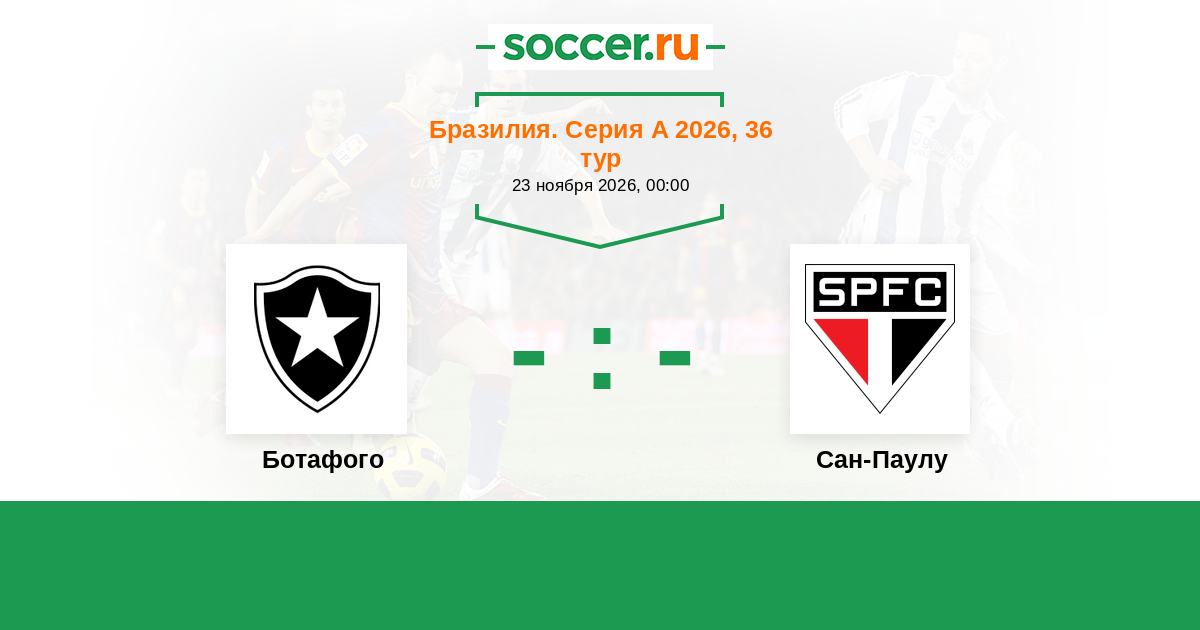 Бразилия. Серия А 21.09.2019 Ботафого Логотип футбольный клуб Ботафого (Рио-де-Жанейро) 1:2 Логотип футбольный клуб Сан-Паулу Сан-Паулу