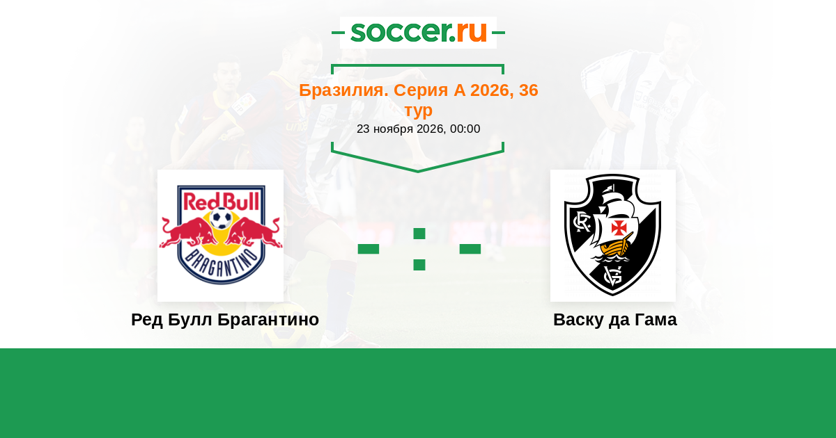 Бразилия. Серия А 27.09.2020 Васку да Гама Логотип футбольный клуб Васку да Гама (Рио-де-Жанейро) 1:1 Логотип футбольный клуб Ред Булл Брагантино (Браганса-Паулиста) Ред Булл Брагантино