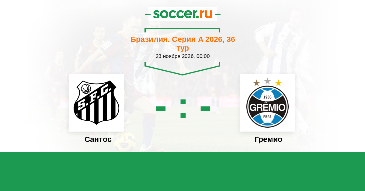 Бразилия. Серия А 17.04.2023 Гремио Логотип футбольный клуб Гремио (Порту-Алегри) 1:0 Логотип футбольный клуб Сантос (Сан-Паулу) Сантос