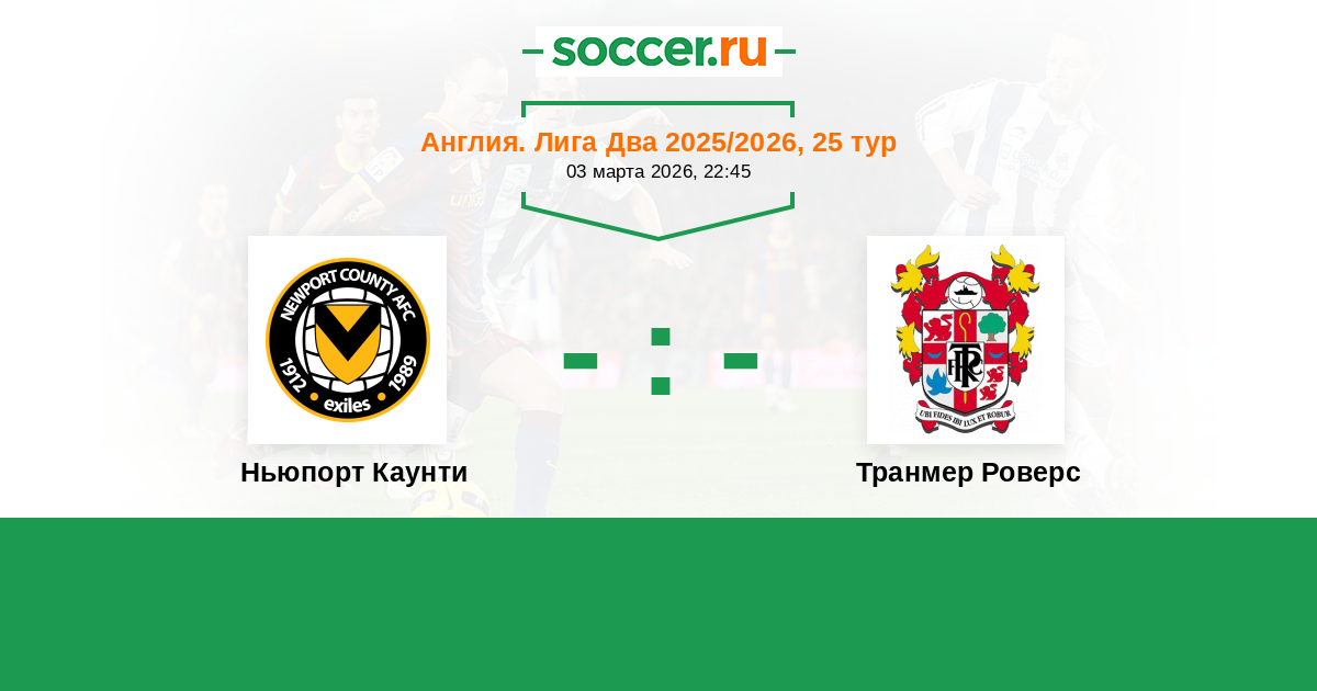 История матча Ньюпорт Каунти против Транмер Роверс
