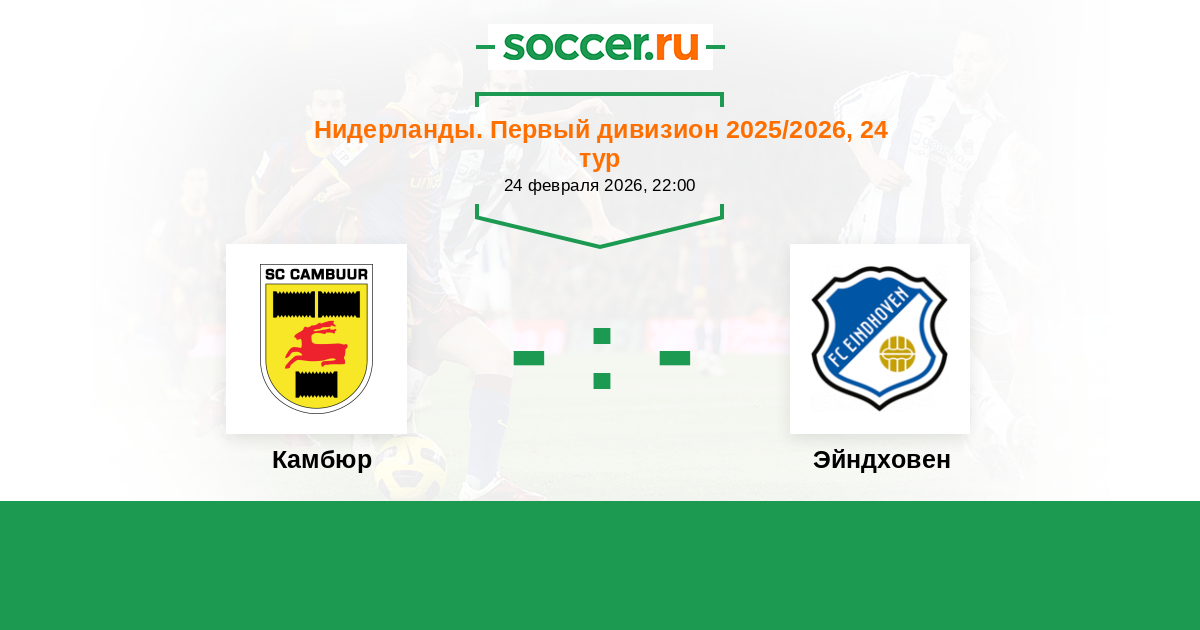 Нидерланды. Первый дивизион 21.10.2024 Камбюр Логотип футбольный клуб Камбюр (Лиуварден) 2:0 Логотип футбольный клуб Эйндховен Эйндховен