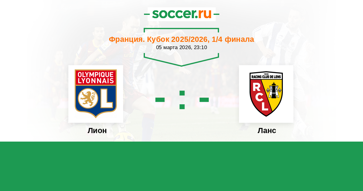 Франция. Лига 1 03.03.2024 Лион Логотип футбольный клуб Лион 0:3 Логотип футбольный клуб Ланс Ланс