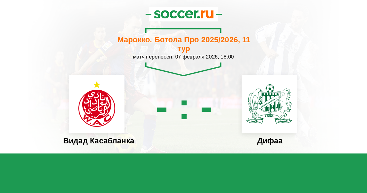 Марокко. Ботола Про 05.09.2022 Видад Касабланка Логотип футбольный клуб Видад Касабланка 3:1 Логотип футбольный клуб Дифаа (Эль-Жадида) Дифаа