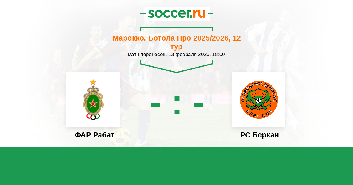 Марокко. Ботола Про 30.01.2025 РС Беркан Логотип футбольный клуб РС Беркан 2:0 Логотип футбольный клуб ФАР Рабат ФАР Рабат