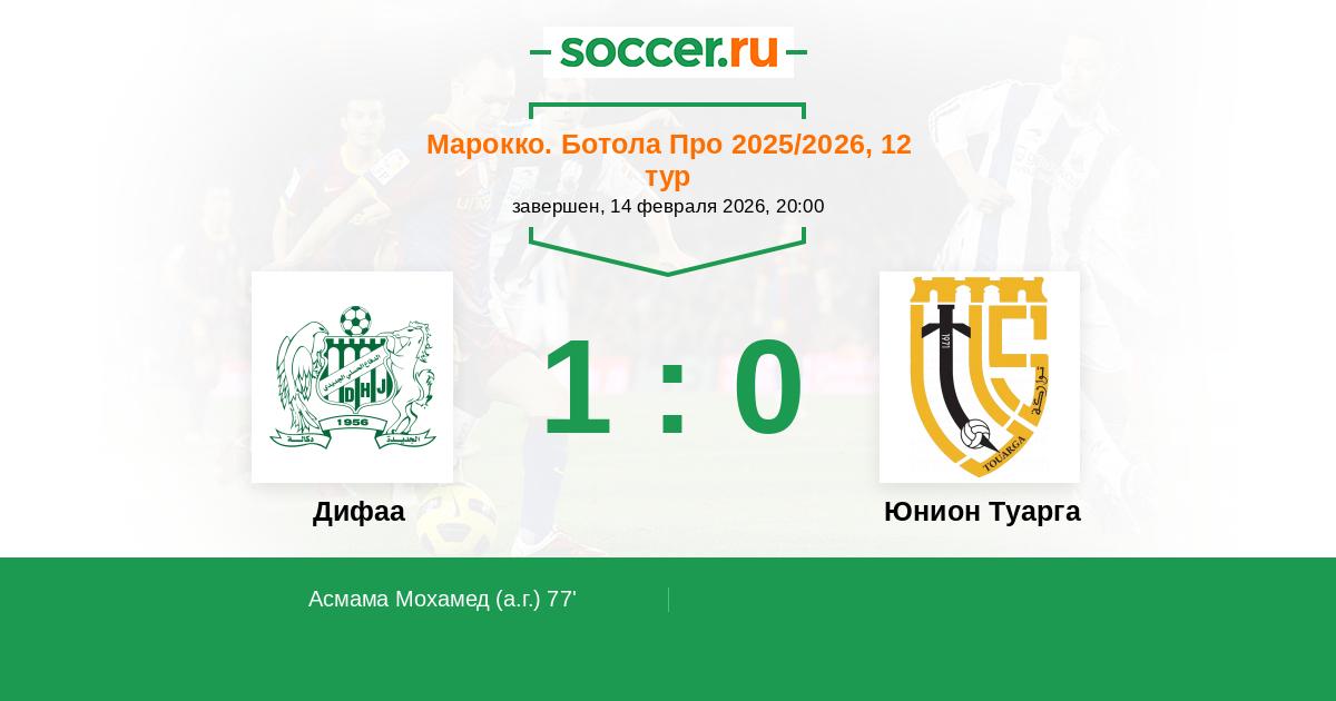 Протокол матча Дифаа против Юнион Туарга