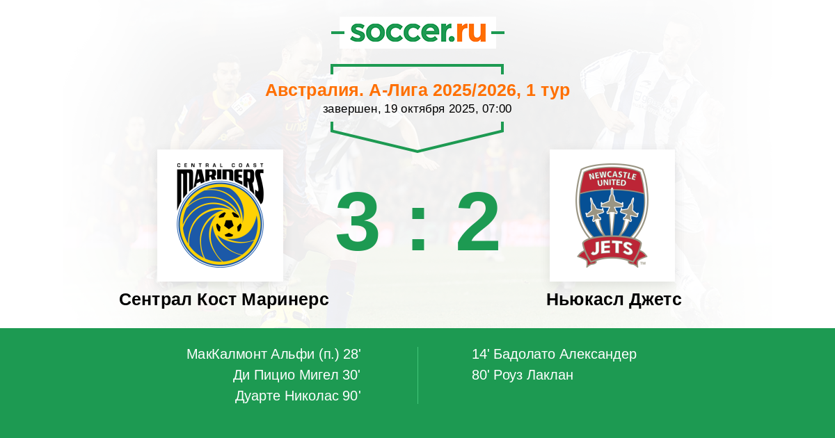 Протокол матча Сентрал Кост Маринерс против Ньюкасл Джетс