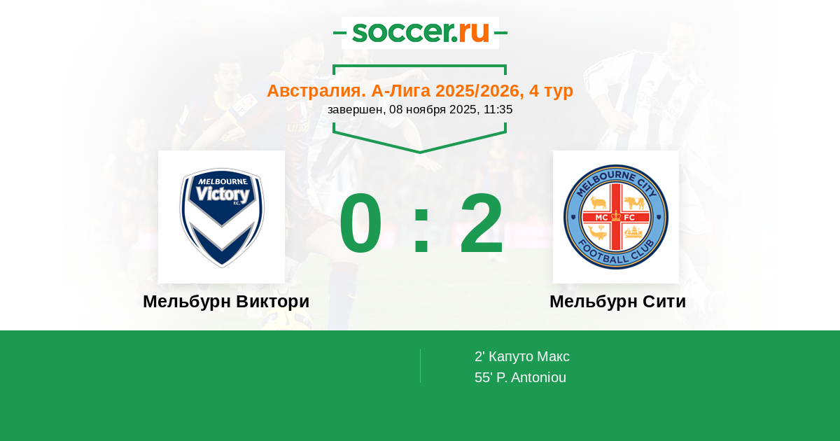 Протокол матча Мельбурн Виктори против Мельбурн Сити
