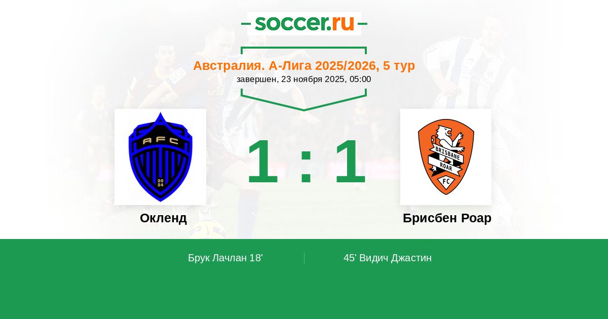 Протокол матча Окленд против Брисбен Роар