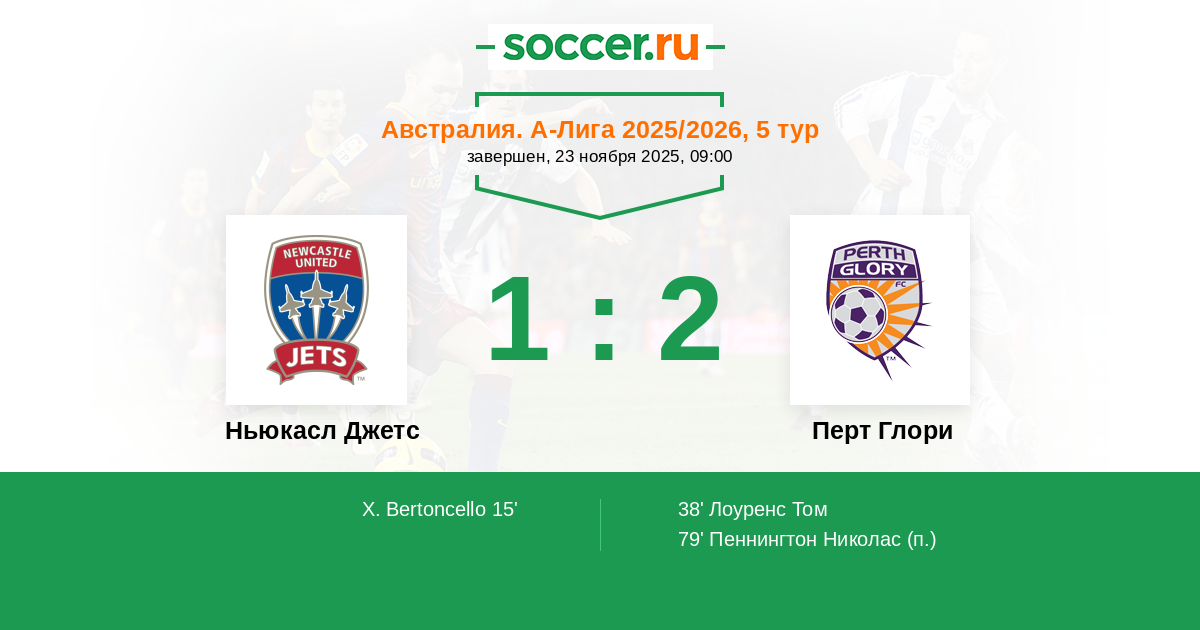 Протокол матча Ньюкасл Джетс против Перт Глори