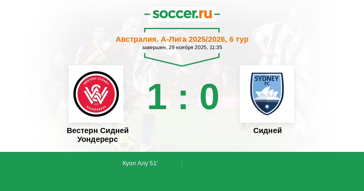 Протокол матча Вестерн Сидней Уондерерс против Сидней