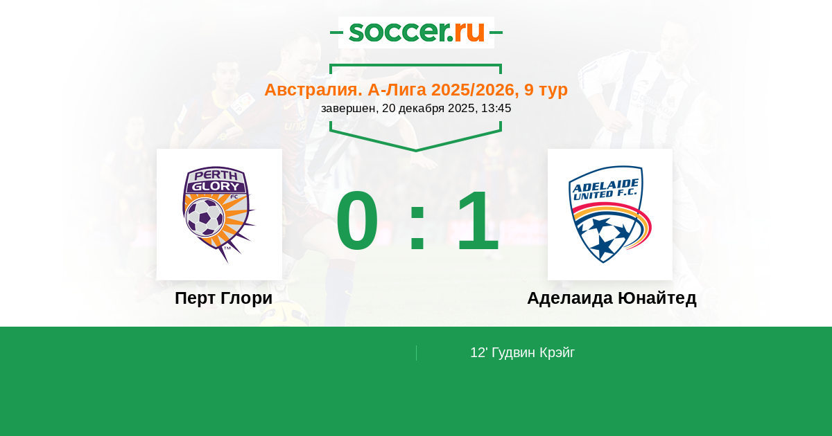 Протокол матча Перт Глори против Аделаида Юнайтед