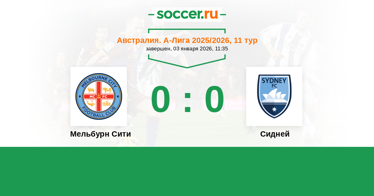 Протокол матча Мельбурн Сити против Сидней