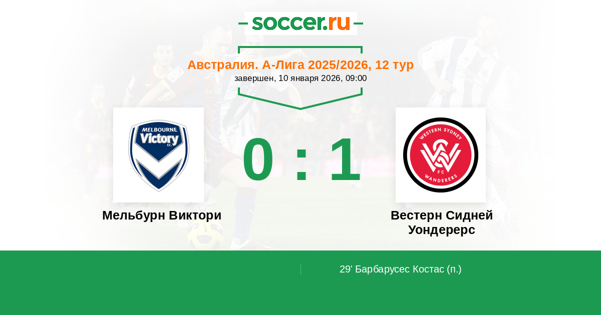 Протокол матча Мельбурн Виктори против Вестерн Сидней Уондерерс