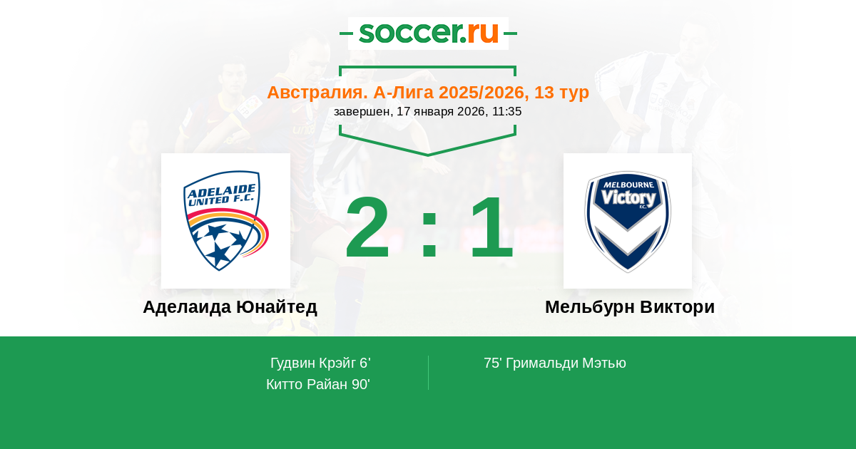 Протокол матча Аделаида Юнайтед против Мельбурн Виктори