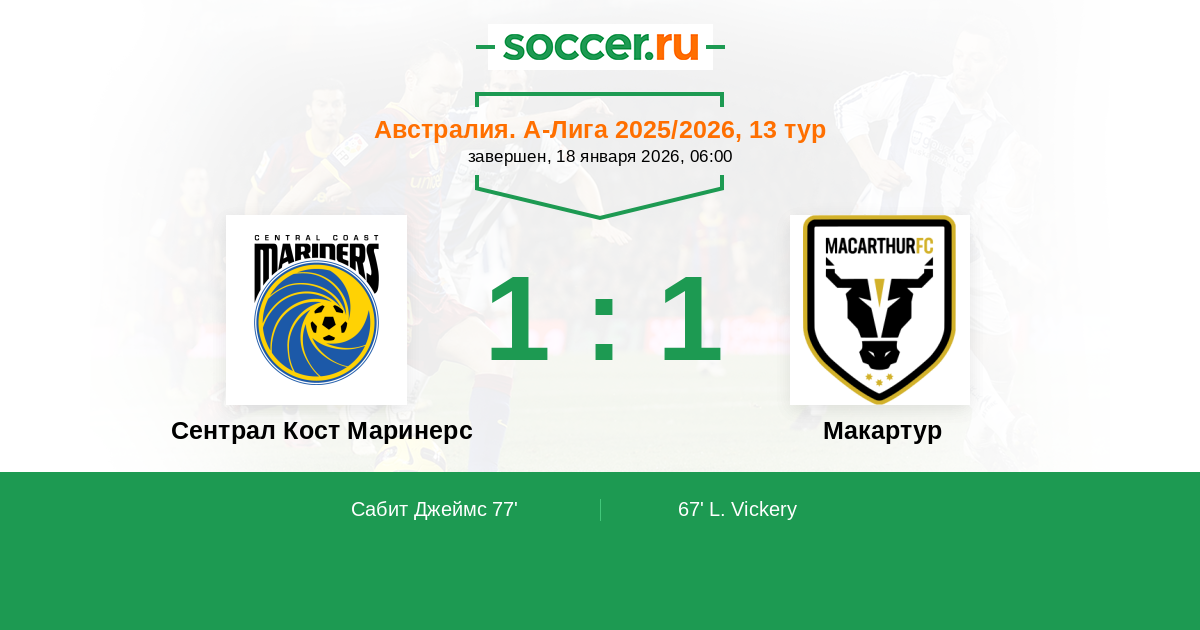 Протокол матча Сентрал Кост Маринерс против Макартур