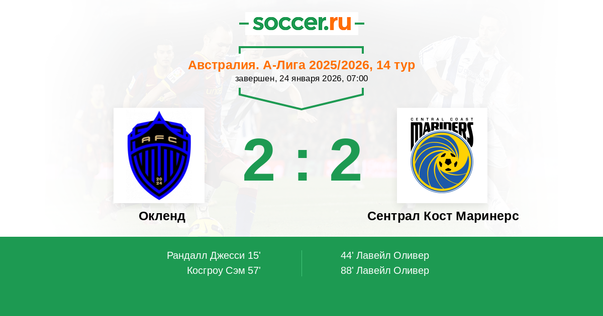 Протокол матча Окленд против Сентрал Кост Маринерс