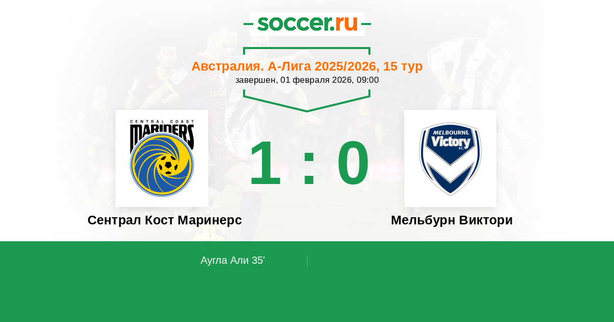 Протокол матча Сентрал Кост Маринерс против Мельбурн Виктори