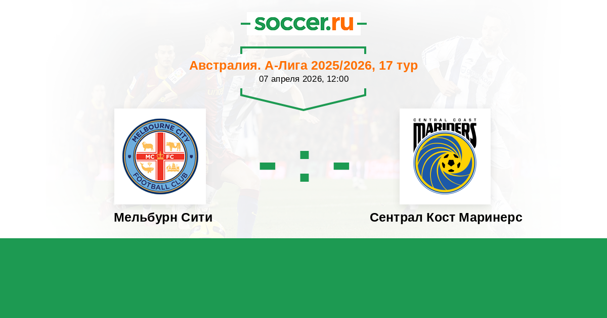 Австралия. А-Лига 05.04.2025 Мельбурн Сити Логотип футбольный клуб Мельбурн Сити 1:0 Логотип футбольный клуб Сентрал Кост Маринерс Сентрал Кост Маринерс