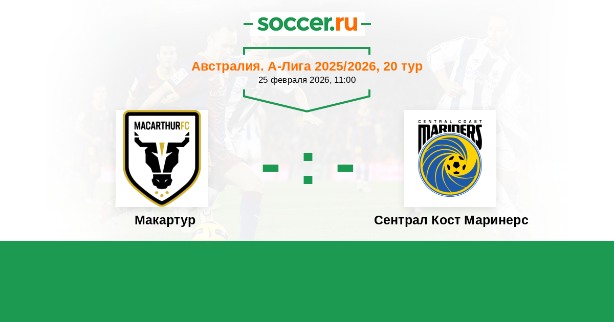Австралия. А-Лига 18.01.2026 Сентрал Кост Маринерс Логотип футбольный клуб Сентрал Кост Маринерс 1:1 Логотип футбольный клуб Макартур (Сидней) Макартур