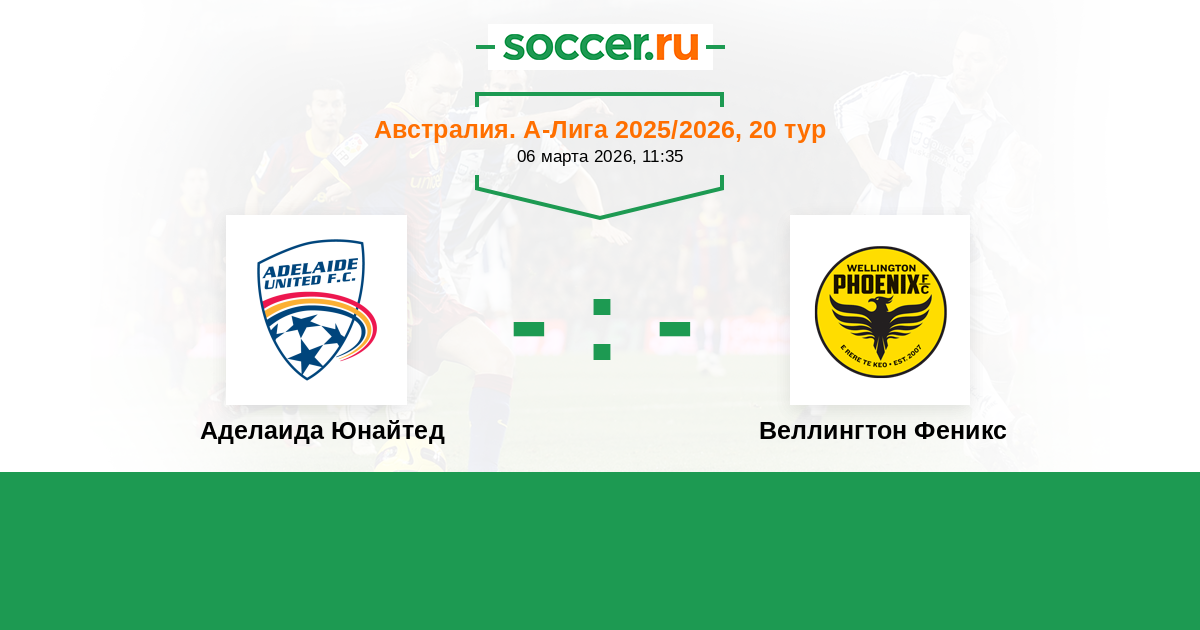Австралия. А-Лига 11.01.2026 Веллингтон Феникс Логотип футбольный клуб Веллингтон Феникс 2:2 Логотип футбольный клуб Аделаида Юнайтед Аделаида Юнайтед