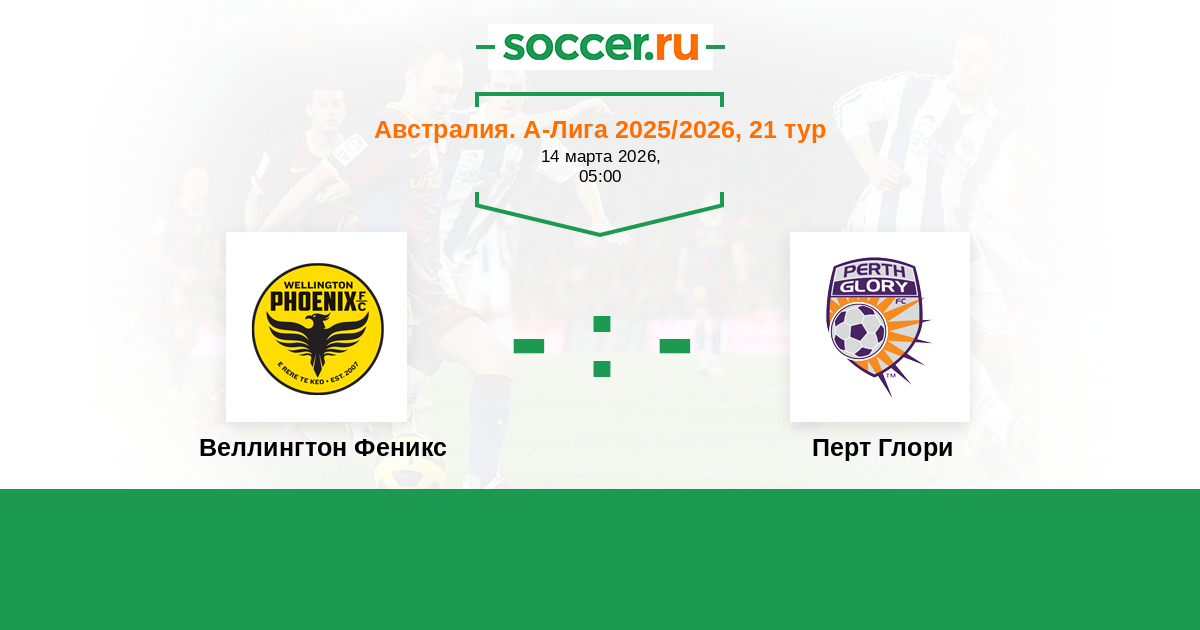 Австралия. А-Лига 24.02.2024 Перт Глори Логотип футбольный клуб Перт Глори 0:0 Логотип футбольный клуб Веллингтон Феникс Веллингтон Феникс