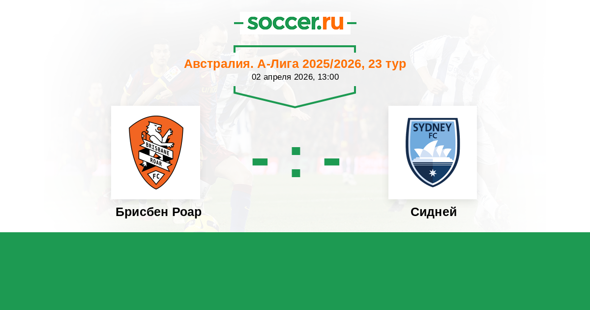 Австралия. А-Лига 24.04.2023 Брисбен Роар Логотип футбольный клуб Брисбен Роар 0:2 Логотип футбольный клуб Сидней Сидней