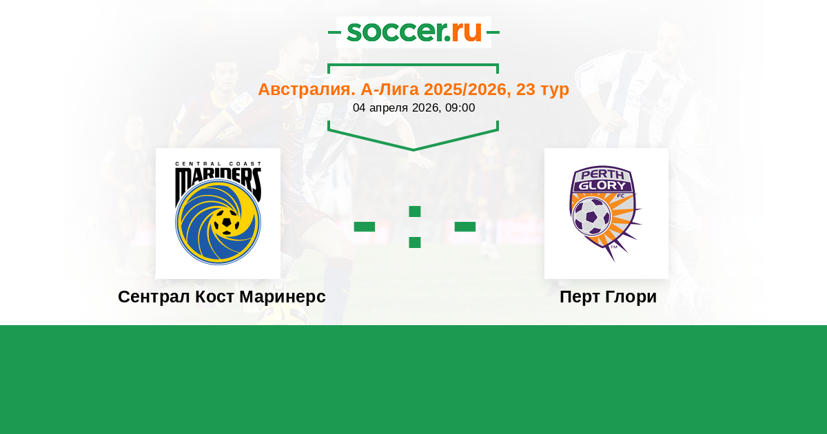Австралия. А-Лига 10.01.2026 Перт Глори Логотип футбольный клуб Перт Глори 3:0 Логотип футбольный клуб Сентрал Кост Маринерс Сентрал Кост Маринерс