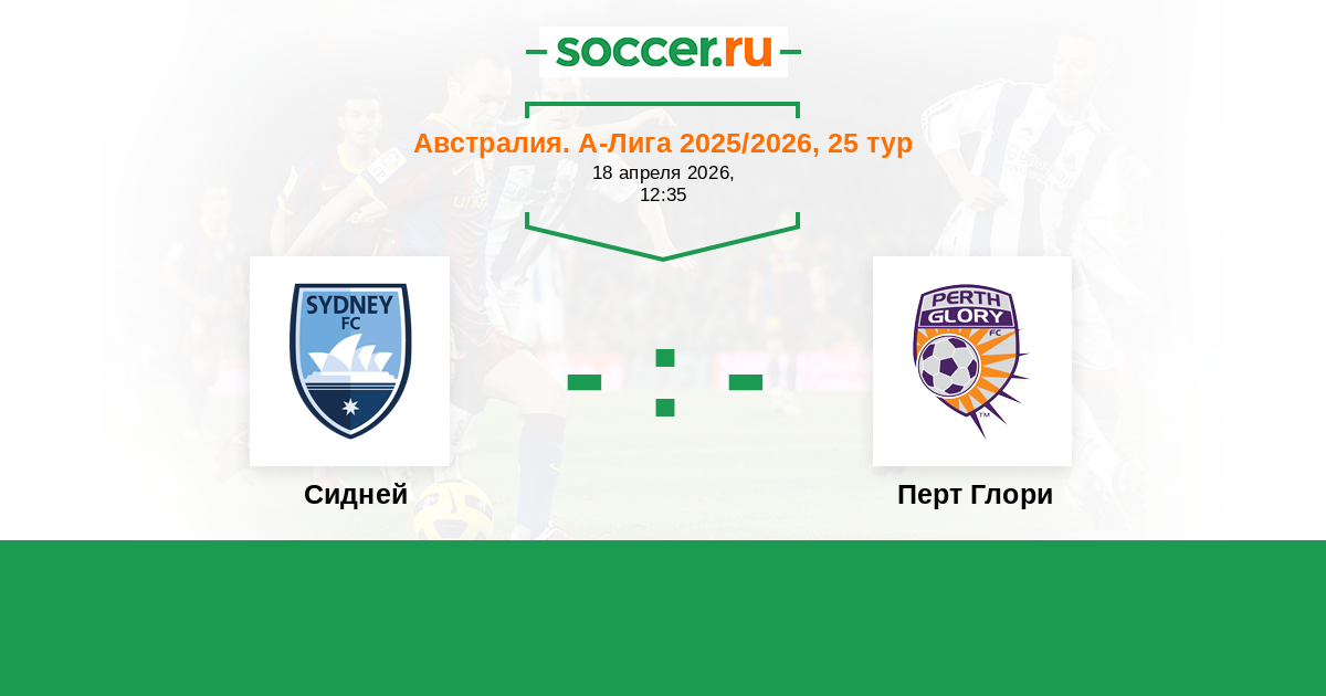 Австралия. А-Лига 22.02.2025 Перт Глори Логотип футбольный клуб Перт Глори 0:0 Логотип футбольный клуб Сидней Сидней