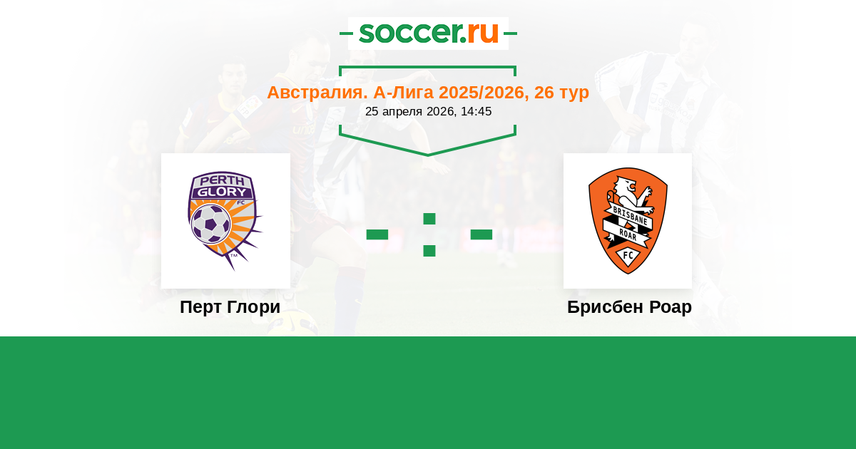 Австралия. А-Лига 16.01.2026 Перт Глори Логотип футбольный клуб Перт Глори 1:2 Логотип футбольный клуб Брисбен Роар Брисбен Роар