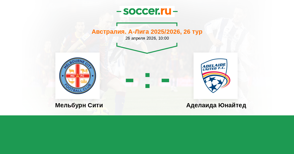 Австралия. А-Лига 26.04.2025 Мельбурн Сити Логотип футбольный клуб Мельбурн Сити 0:0 Логотип футбольный клуб Аделаида Юнайтед Аделаида Юнайтед
