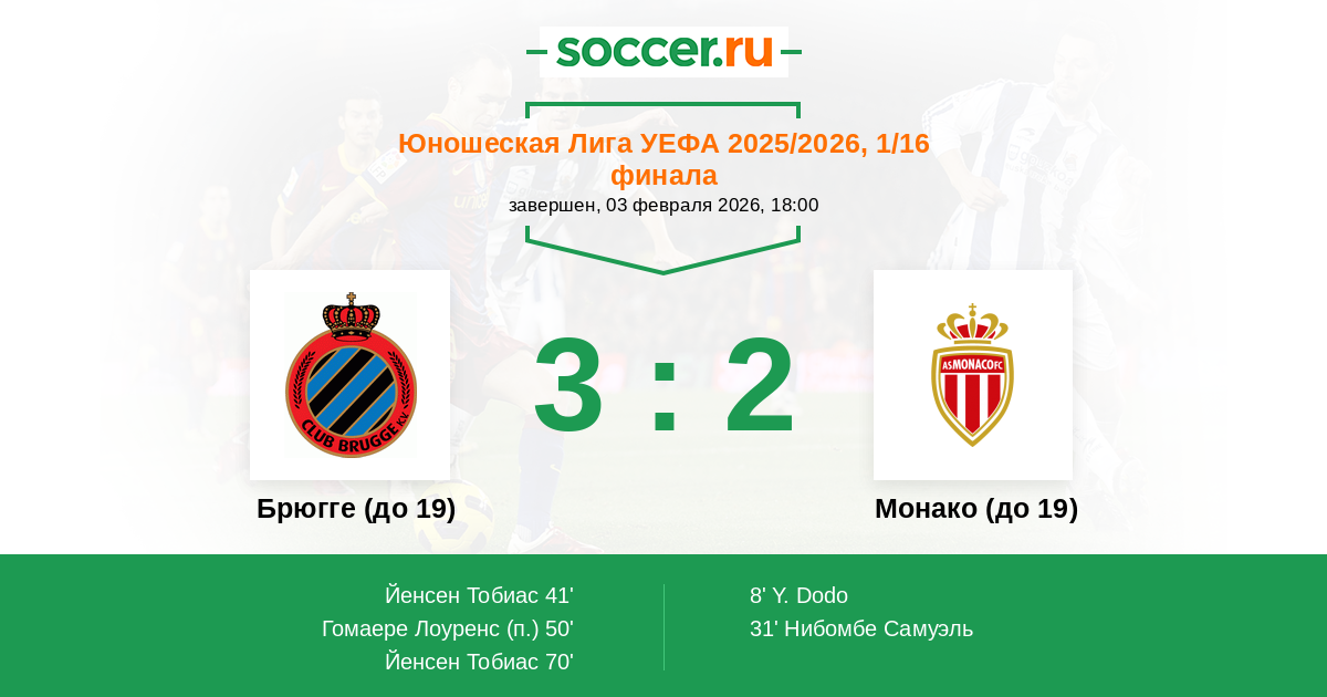 Протокол матча Брюгге (до 19) против Монако (до 19)