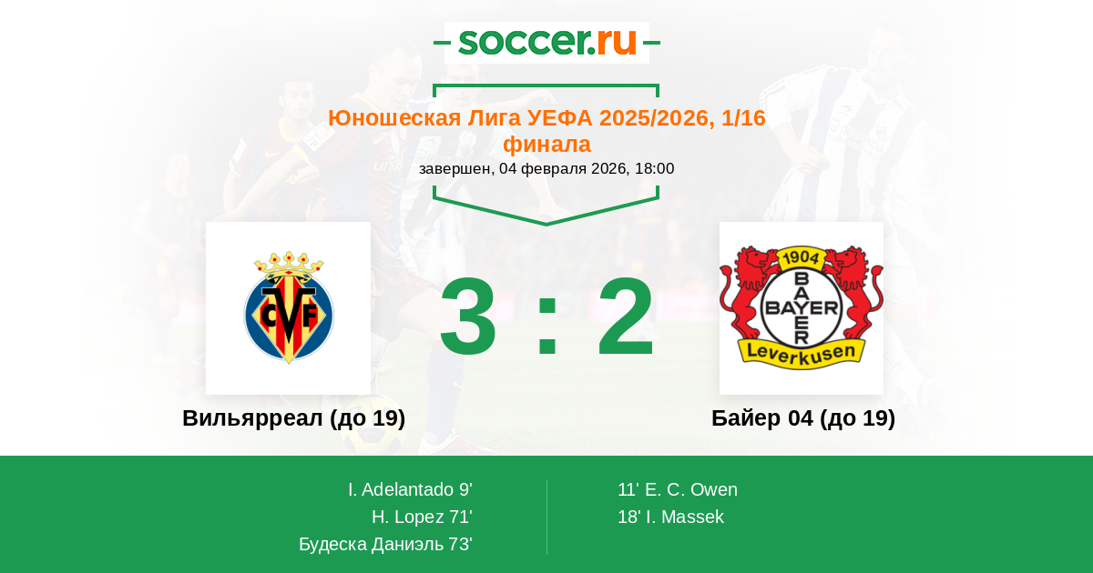 Протокол матча Вильярреал (до 19) против Байер 04 (до 19)