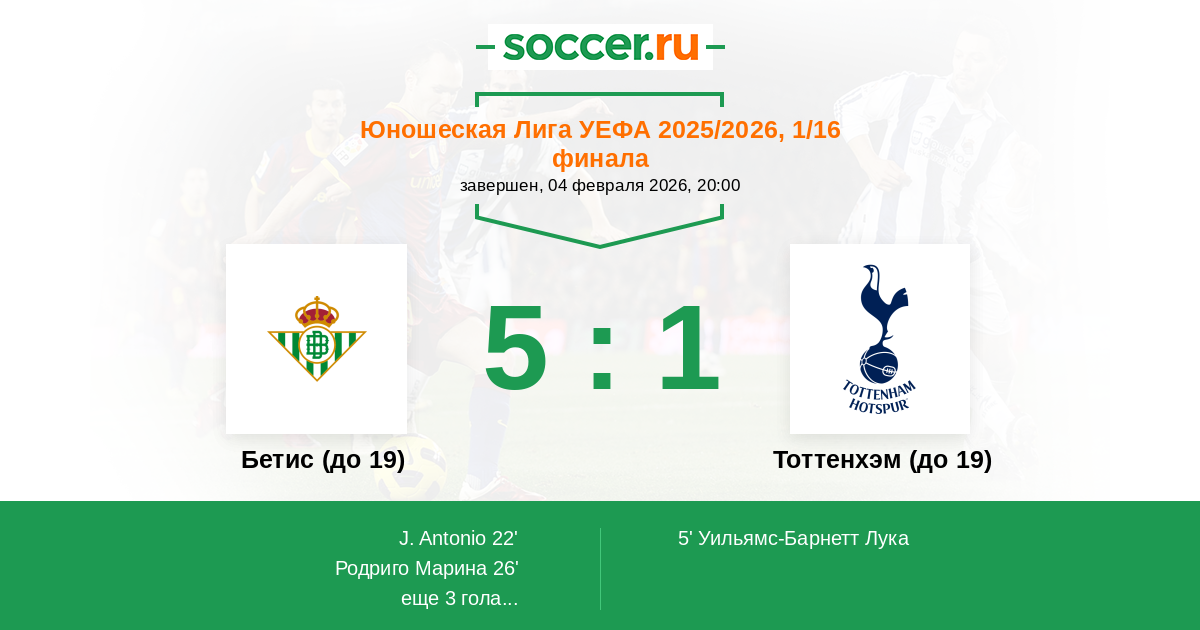 Протокол матча Бетис (до 19) против Тоттенхэм (до 19)