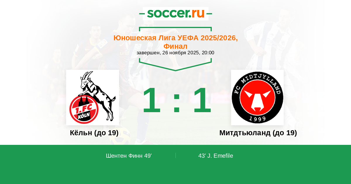 Протокол матча Кёльн (до 19) против Митдтьюланд (до 19)