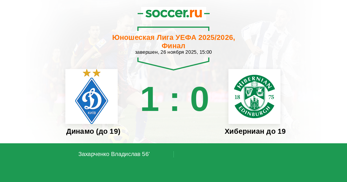 Протокол матча Динамо (до 19) против Хиберниан до 19
