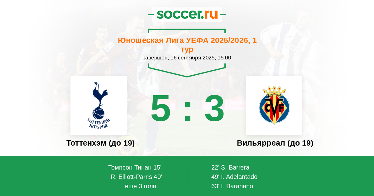 Протокол матча Тоттенхэм (до 19) против Вильярреал (до 19)