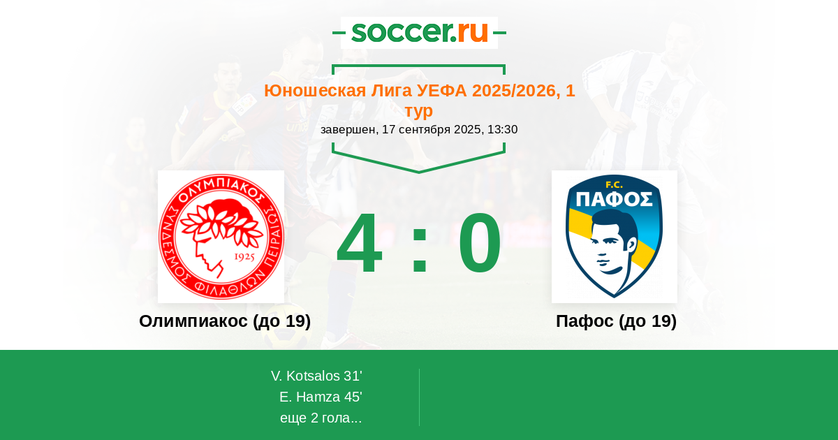 Протокол матча Олимпиакос (до 19) против Пафос (до 19)