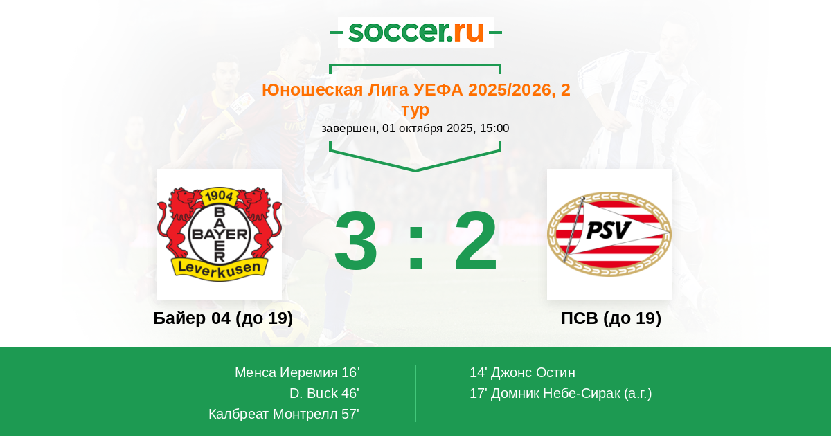Протокол матча Байер 04 (до 19) против ПСВ (до 19)