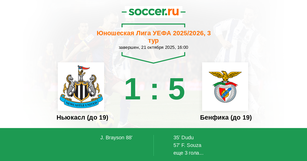 Протокол матча Ньюкасл (до 19) против Бенфика (до 19)