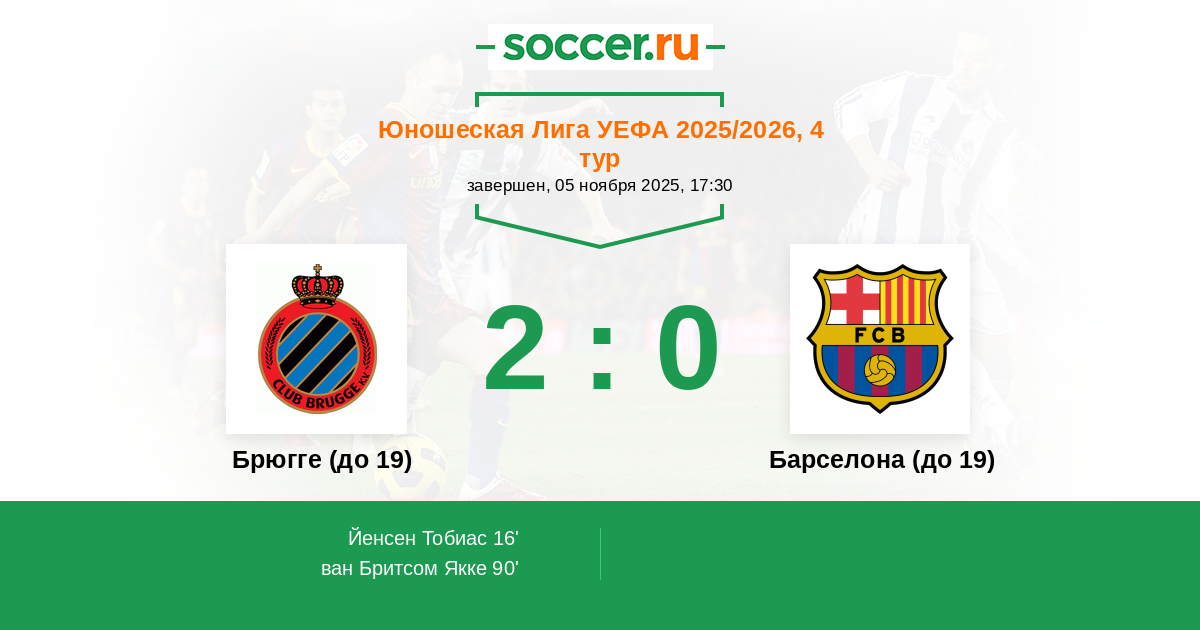Протокол матча Брюгге (до 19) против Барселона (до 19)