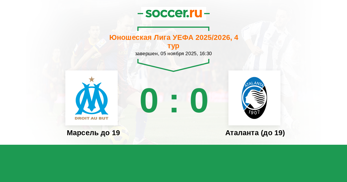 Протокол матча Марсель до 19 против Аталанта (до 19)