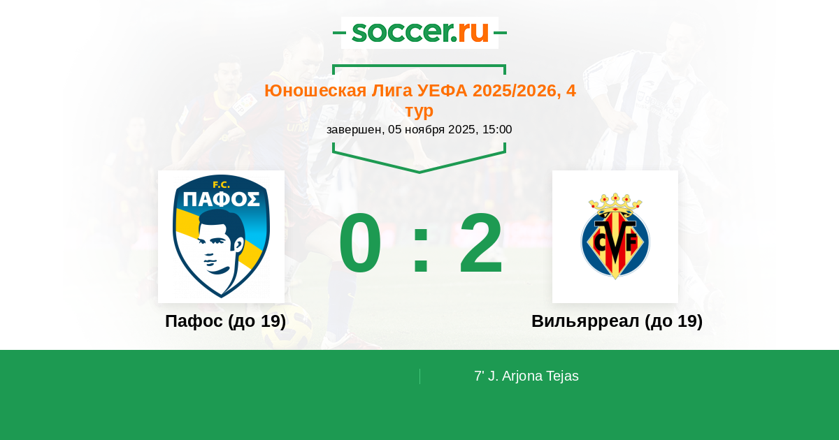 Протокол матча Пафос (до 19) против Вильярреал (до 19)