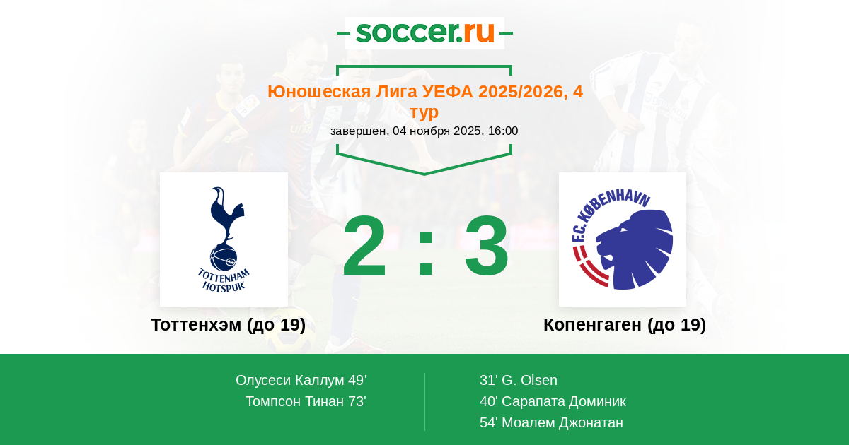 Протокол матча Тоттенхэм (до 19) против Копенгаген (до 19)