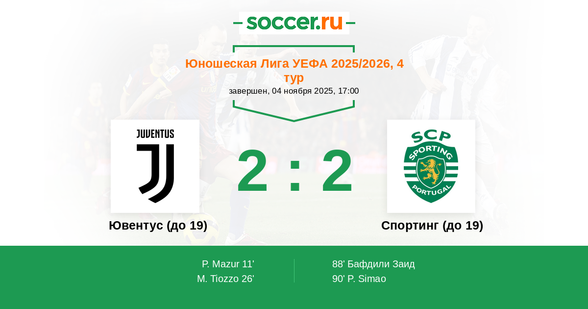Протокол матча Ювентус (до 19) против Спортинг (до 19)